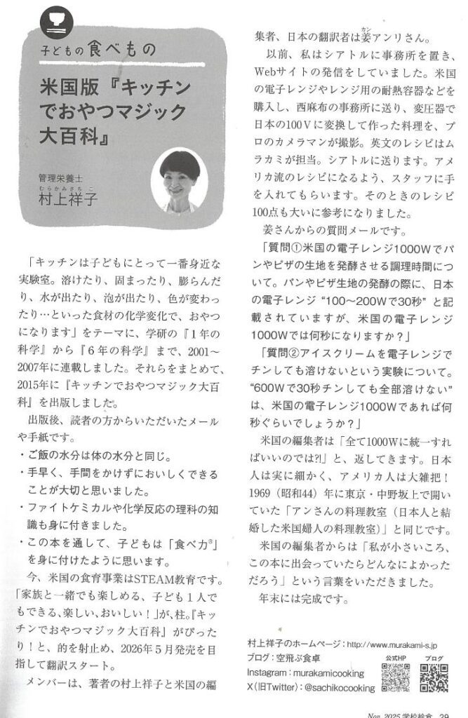 連載中の「子どもの食べもの」今月は