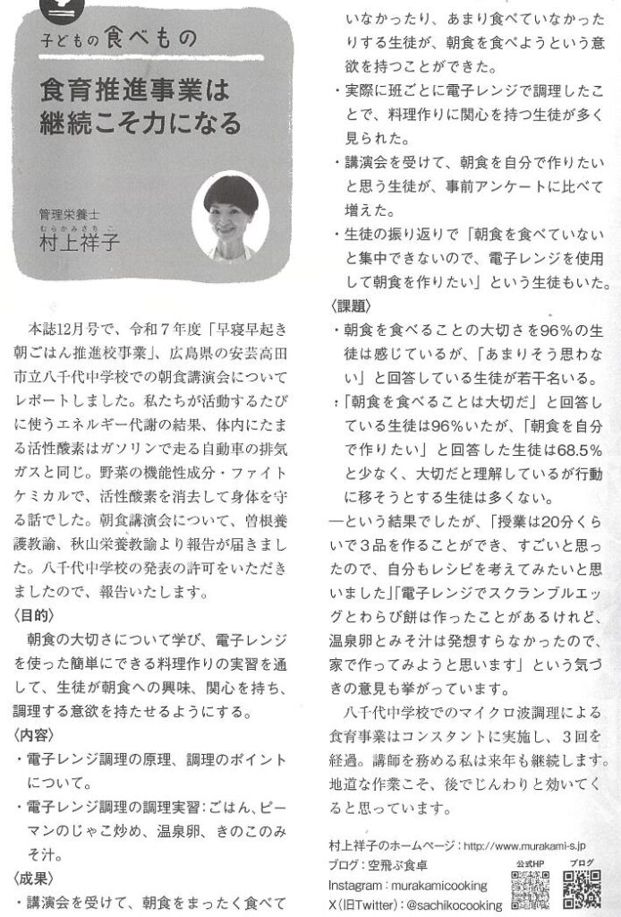 連載中の「子どもの食べもの」今月は