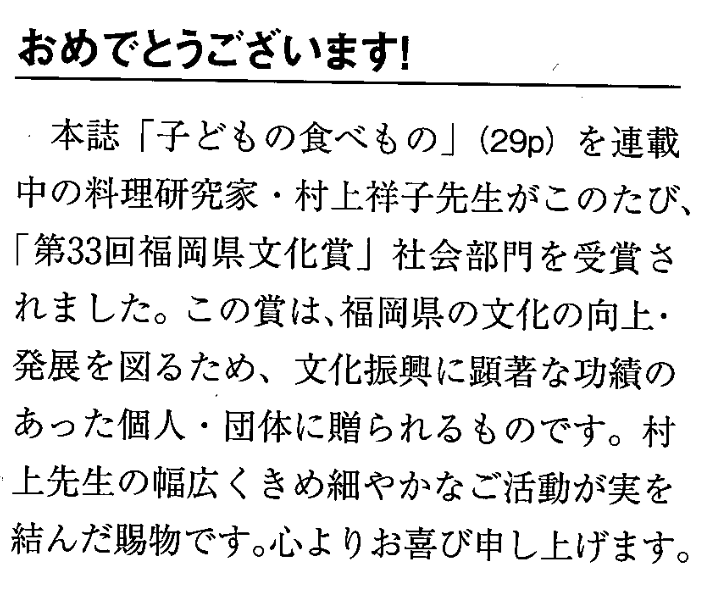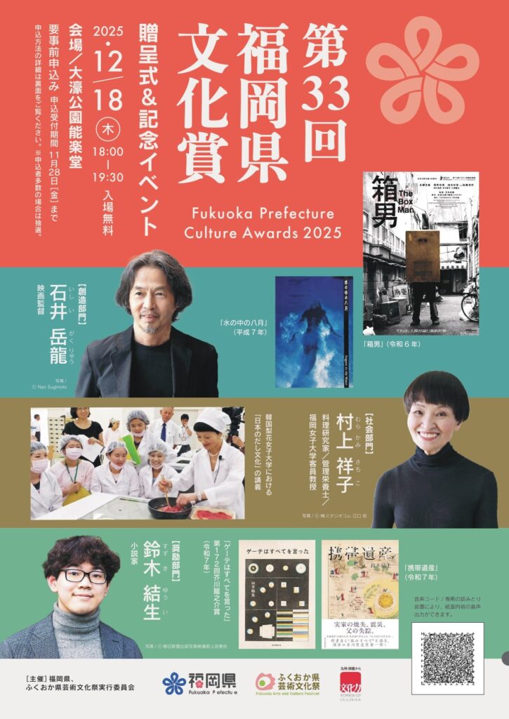 「第33回福岡県文化賞」受賞のお知らせが掲載されています。
